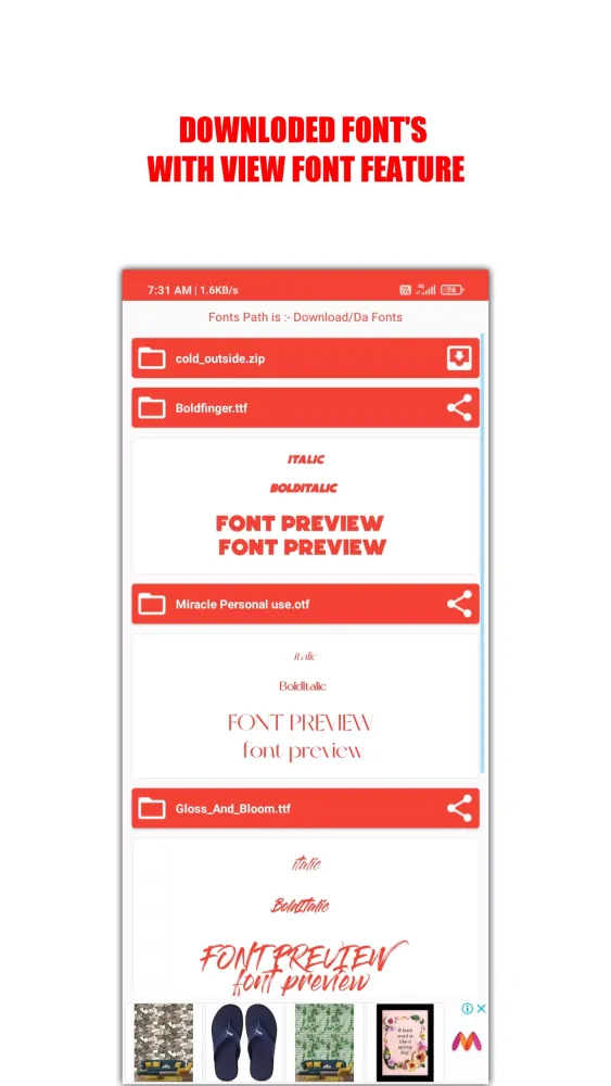 The app boasts several impressive features that set it apart from competitors. Firstly, it's incredibly easy to navigate, ensuring that even first-time users can find what they need quickly. Its speed is unmatched, allowing you to download fonts without any hassle. The app also offers the freedom to use these fonts for personal and commercial purposes, giving you full rights to creativity. Sharing fonts with friends is made effortless through the built-in sharing option, enhancing collaboration and inspiration.