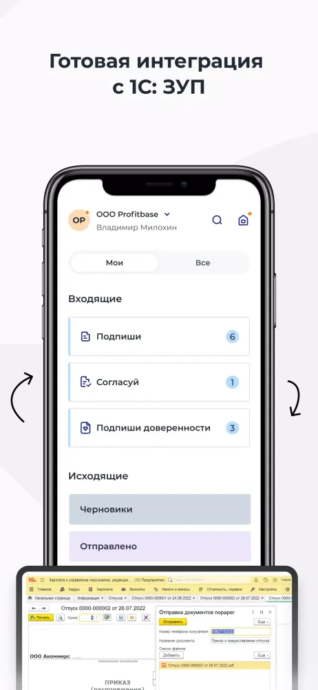 At its core, GRADUS e-Docs enables you and your employees to create and sign up to 90% of all personnel documents electronically. From standard employment contracts to performance reviews, this platform simplifies the entire document lifecycle. For personnel specialists, the application provides seamless integration with 1C:ZUP, one of the most popular payroll and HR management systems in the market. This integration ensures that data flows effortlessly between your existing systems and GRADUS e-Docs, reducing manual entry errors and saving time.
