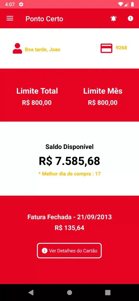 In today's fast-paced world, managing your financial information efficiently is more important than ever. The "Ponto Certo Card" application is designed to simplify this process by providing you with a seamless way to access all your card-related data in one place. Whether you're a busy professional or someone who simply wants to stay on top of their finances, this app ensures that you have everything you need at your fingertips.