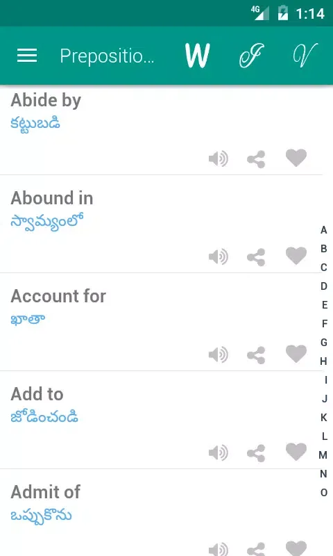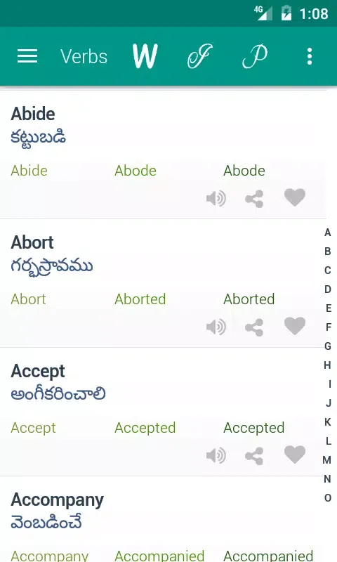 Verb Telugu is an application designed to help you master English verbs, idioms, phrases, and prepositions with their Telugu equivalents. The app offers a rich collection of English verbs, each accompanied by its Telugu translation, making it an invaluable resource for learners of both languages.