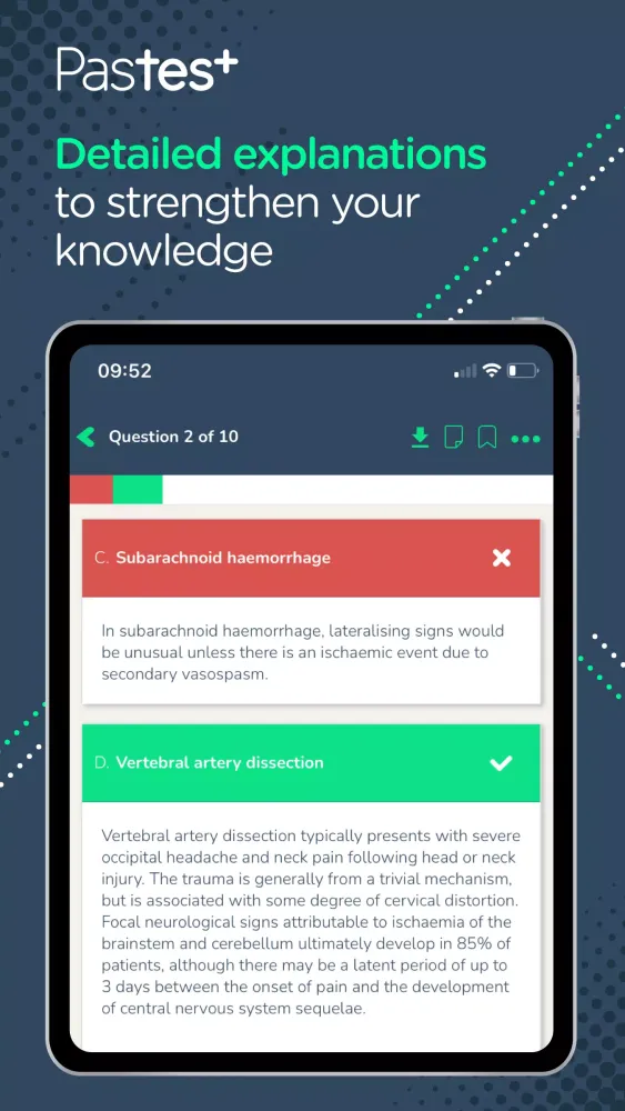 Pastest goes beyond just questions and media. Our unique Expanded Explanations feature provides an extensive library of searchable, topic-based content to strengthen your knowledge. You can customize the order in which these explanations are displayed, download questions and media for offline access, and improve your bookmarking and note-taking capabilities. A streamlined navigation system allows you to quickly resume sessions in progress and review them with ease. Plus, you get more detailed and accurate performance data to track your progress effectively.