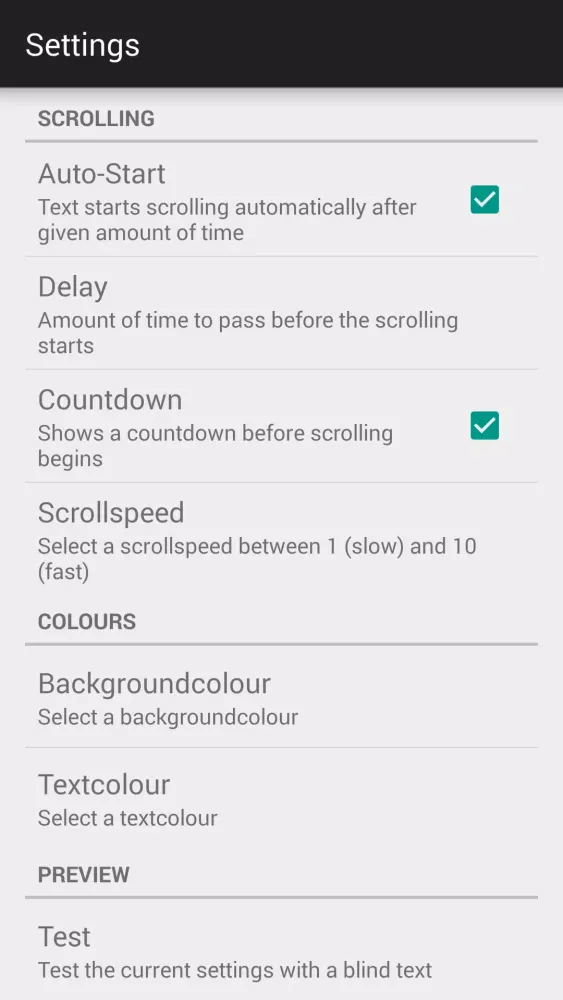 With its intuitive interface, "Simple Teleprompter" empowers users to customize the teleprompter to fit their unique requirements. From adjusting the scrolling speed to selecting preferred fonts, colors, and even enabling auto-starting or mirroring features, the app offers an array of practical tools that enhance your presentation experience. Whether you're preparing for a professional conference, delivering a speech, or simply rehearsing lines, this app ensures smooth transitions between words while maintaining eye contact with your audience.