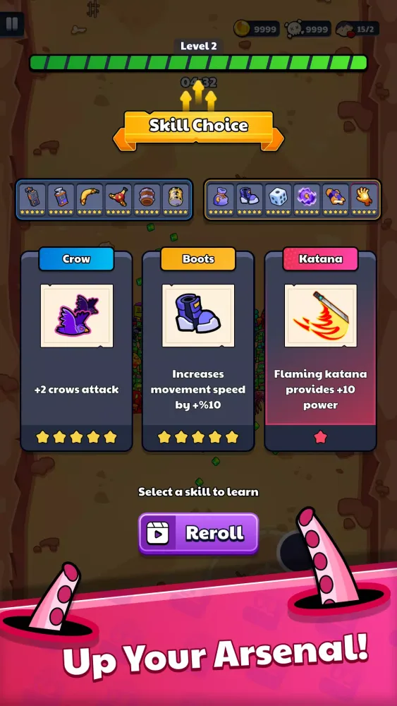 - Upgrade your stats by leveling up with a variety of RPG skill choices.