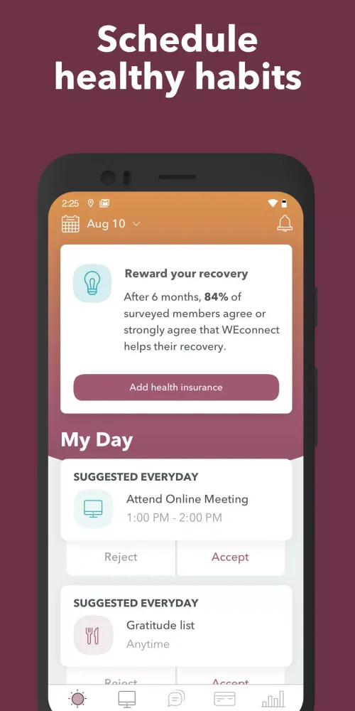 One of the standout features of WEconnect Health is its ability to personalize your journey. Users can meet one-on-one with a dedicated peer support specialist, attend online support meetings, set and track goals, and build healthier habits. The app encourages users to celebrate milestones, helping them stay motivated as they work toward long-term recovery. It’s important to note that peer support services are available exclusively to individuals enrolled through their employer or insurance provider.