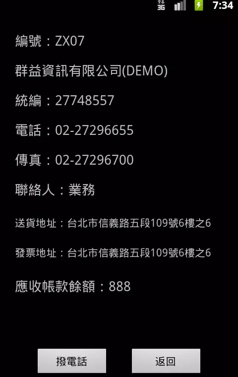 Once the desired customer is found, users have the convenience of directly dialing the customer's phone number without leaving the app. This feature streamlines communication processes, saving valuable time and effort. Additionally, the application goes beyond just displaying contact information; it also provides critical financial insights such as the current balance of accounts receivable. This functionality is particularly beneficial for businesses looking to keep track of outstanding payments and manage their cash flow more efficiently.