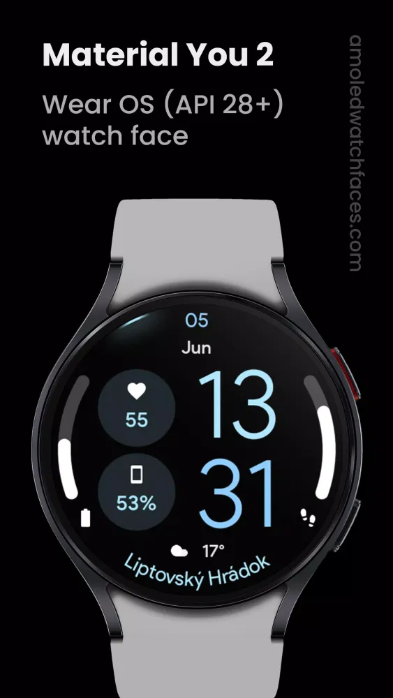 The second edition of the popular Material You watch face is now available! This version features an enhanced design with true black backgrounds, high-resolution graphics, and two customizable progress bars. Additionally, it supports mesh backgrounds, making your smartwatch display even more captivating.