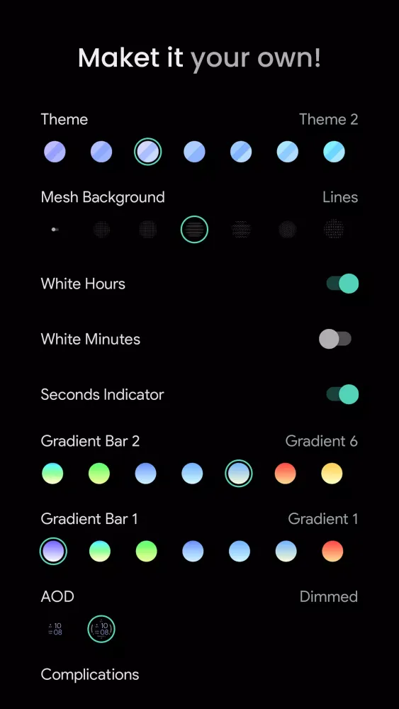 - Complication Bar 2 (Gradient - 12 options) (API 33+)