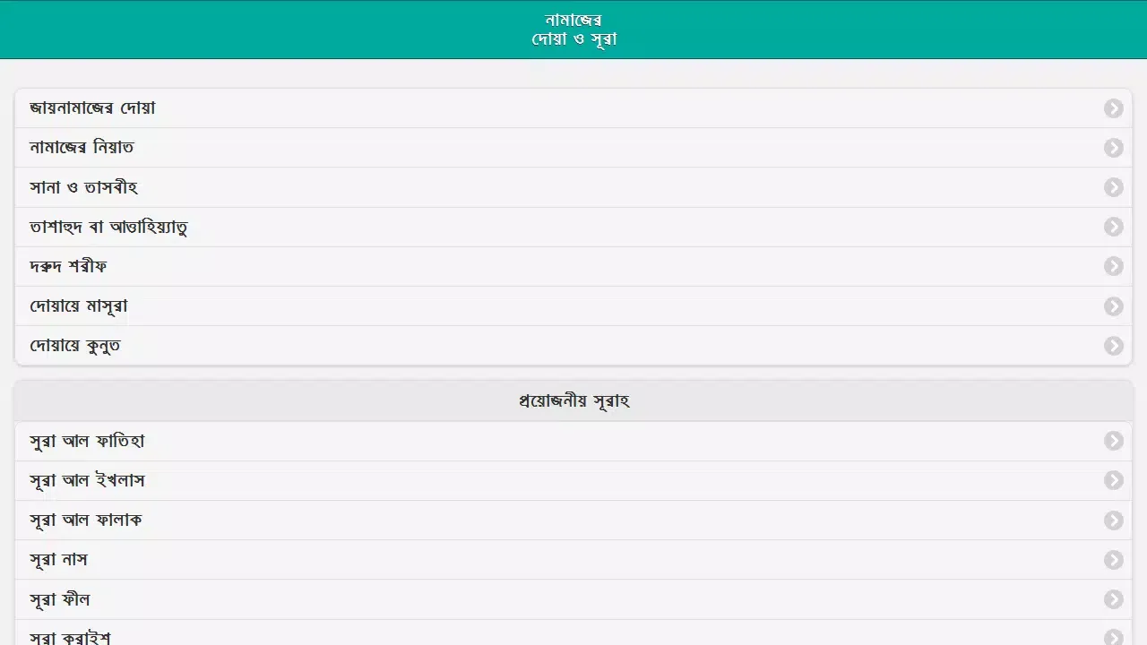 Description of the "নামাজের দোয়া ও সূরা" Application