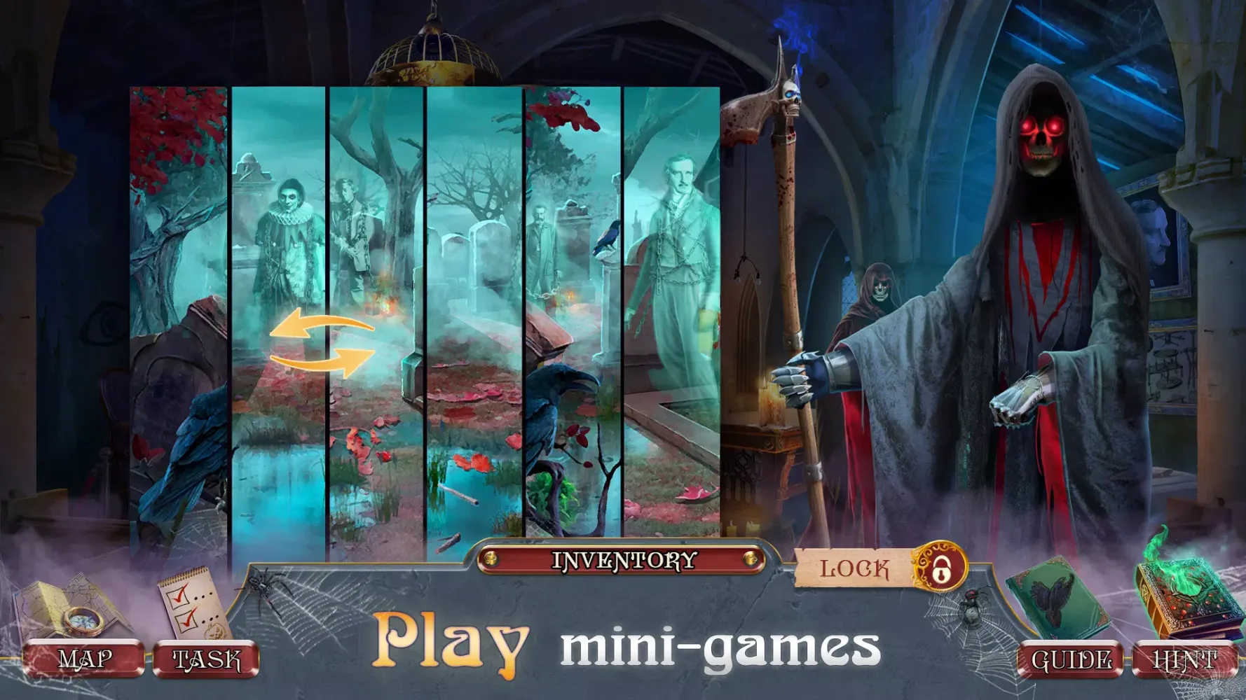 Navigate through engaging hidden object scenes (HOPs) and mini-games to discover the hidden secrets of Poe's afterlife. Each scene is filled with intriguing details, and you'll need to use your keen eye to spot the missing items and artifacts. As you progress, you'll encounter surprising plot twists that keep you on the edge of your seat.