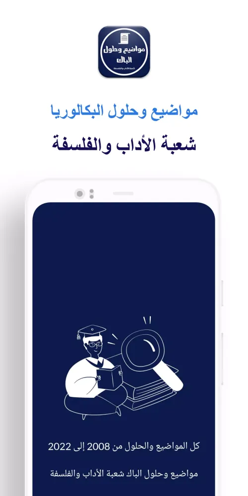The application "بكالوريا شعبة الأداب والفلسفة" (Bachelor of Arts and Philosophy) provides comprehensive coverage of topics and solutions for students preparing for their baccalaureate exams in the Arts and Philosophy division. This app offers a rich repository of materials spanning from 2008 to 2022, making it an invaluable resource for students looking to excel in their academic pursuits.