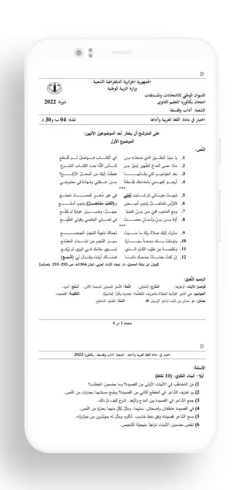 Description of the Application "بكالوريا شعبة الأداب والفلسفة"
