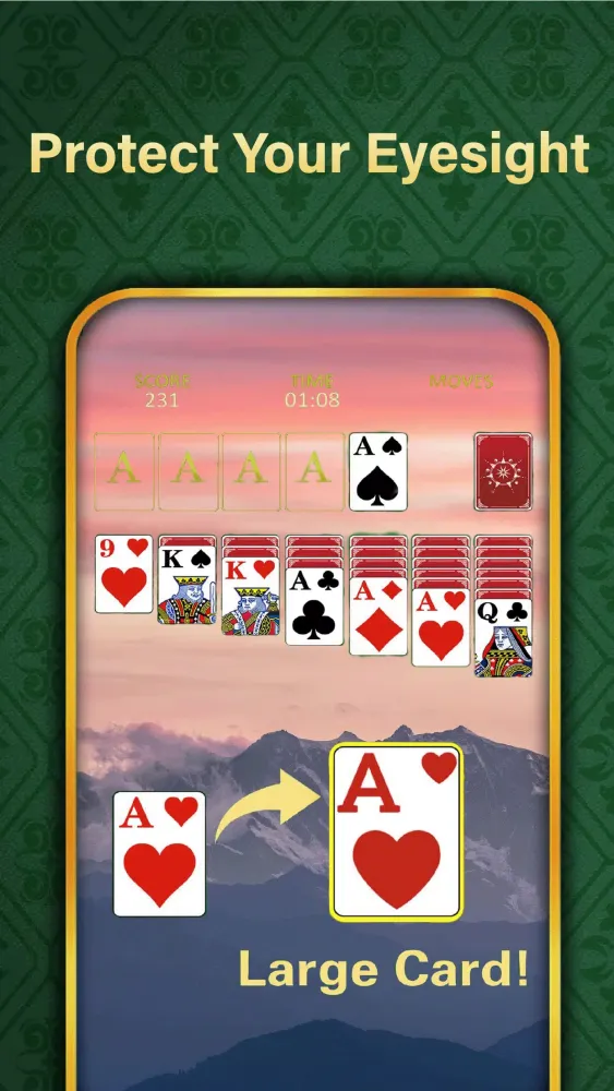 Unlimited intelligent hints and undo options make it easy to overcome challenges. Quick mode helps with card placement, and free shuffles are available when you get stuck. The sleek and elegant interface, clear card designs, large fonts, and eye-friendly themes add to the overall enjoyment. Enjoy diverse backgrounds and other beautiful visual elements.