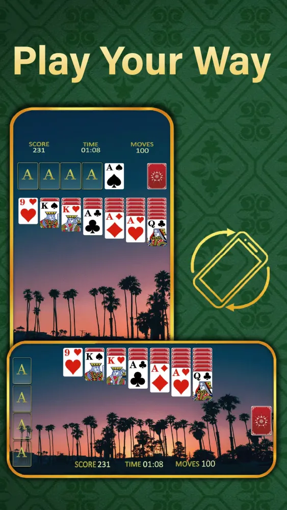Immerse yourself in hours of entertainment with stunning card decks and seamless gameplay. Explore various game modes, including classic, Spider, and Freecell variations. Customize your Solitaire experience with features like landscape and portrait modes, left-handed and right-handed options, and compatibility with both iPhone and iPad. No Wi-Fi required, ensuring you can play offline anytime.