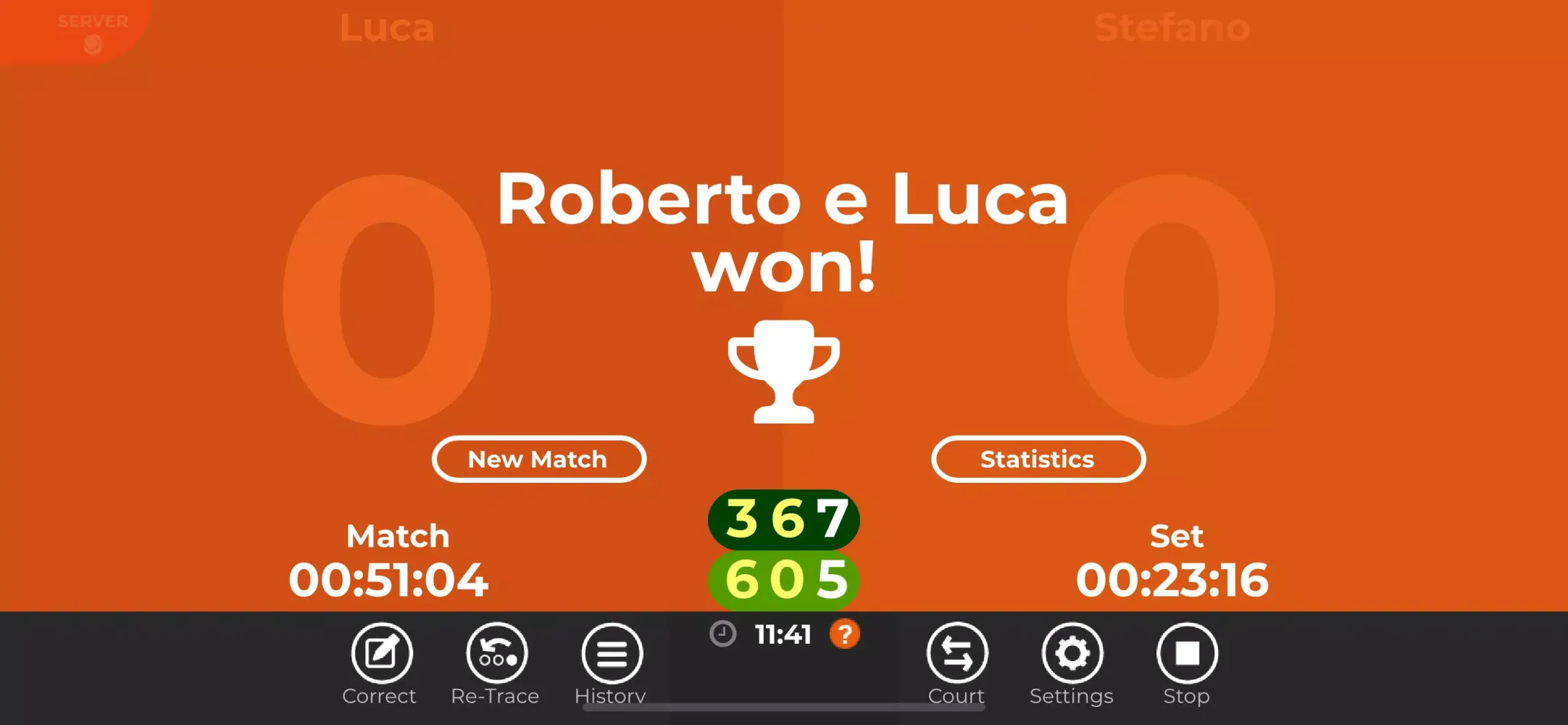 "Referi" goes beyond mere scorekeeping; it’s a tool for tracking and analyzing performance. Matches can be saved both locally and online via the secure web portal at https://referi.azurewebsites.net/Account/Login. This feature enables users to revisit their stats, share them with teammates, or even challenge themselves with new goals based on past performances. Additionally, the app supports coin tosses for determining who serves and chooses the court at the start of each game, adding another layer of fairness and excitement.