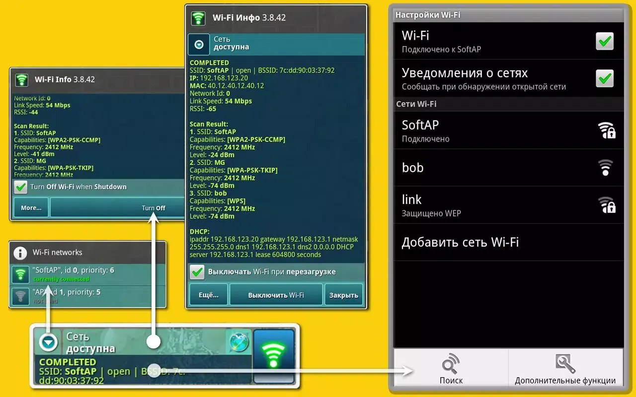 Switching between previously configured Wi-Fi networks has never been easier. With the Wi-Fi Info Widget, users can quickly toggle between saved networks, saving valuable time and effort. Furthermore, the widget provides the flexibility to remove networks from the list of saved networks, giving users complete control over their saved Wi-Fi configurations. To enhance the scanning experience, the widget also includes a dedicated button for initiating a scan for nearby access points, ensuring that users can explore all available options.