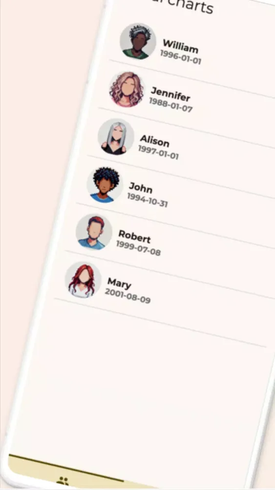One of the most common frustrations among astrology lovers is the difficulty of storing and accessing multiple birth charts. Lilith solves this problem by providing a fast and efficient way to save and organize the natal charts of your friends and family. Imagine having all the charts you need at your fingertips—no more searching through old notes or endlessly scrolling through social media. With Lilith, managing birth charts becomes simple and straightforward, allowing you to focus on what truly matters: understanding yourself and others through the lens of astrology.