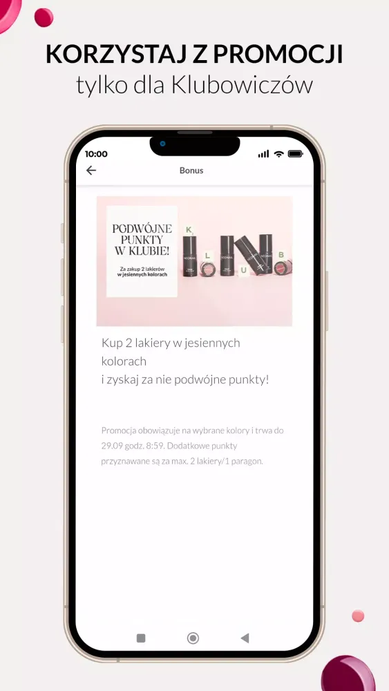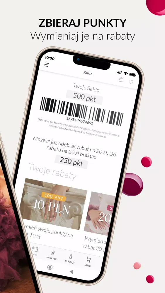 When you join our loyalty program, you gain access to a host of advantages. From favorable discounts on nail polishes and manicure accessories to earning loyalty points with every purchase, the rewards keep coming. Each PLN 1 spent equals one point added to your account. You can also earn extra points by referring the app to friends, celebrating your birthday, and marking other special occasions within the program.