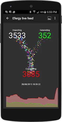 - Be mesmerised by the animated dots that represent electricity flowing between the grid (import or export) your solar panel generation and your household comsumption.