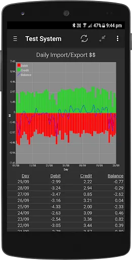 - Swipe up/down to move between Generation, Consumption, Import/Export kWH, Import/Export Monetary and Extended Data.