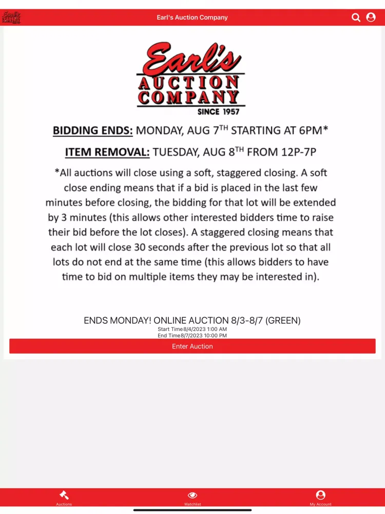Whether you're a seasoned collector or just starting your journey, Earl's Auction Company invites you to explore our auctions. With a wide variety of items up for grabs and a user-friendly online platform, there's never been a better time to join us. Register now and experience the thrill of bidding in our upcoming auctions.