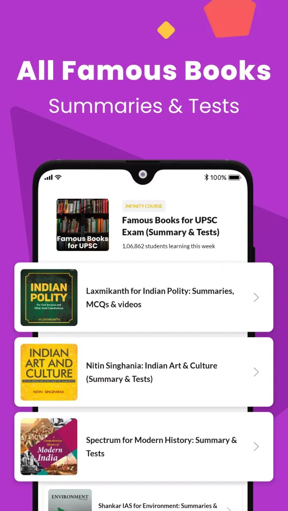 Another key aspect of this app is its alignment with standard UPSC preparation books. It recommends essential texts such as "Freedom Struggle" by Bipin Chandra, "Modern India" by Spectrum, "Indian Polity" by Laxmikant, "Indian Economy" by Ramesh Singh, "Physical Geography" by GC Leong, and "Environment" by Shankar IAS Academy. Additionally, it covers specialized topics like Internal Security by Ashok Kumar Singh and International Relations by Rajiv Sikri. While these books are not directly integrated into the app, they serve as valuable references for candidates using the platform.