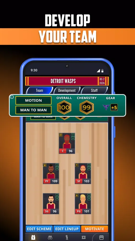 Make strategic decisions and fulfill your destiny as a legendary general manager. Build a long-lasting basketball dynasty that will dominate the league for decades. The choice is yours!