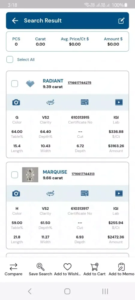 - Wish List: Save your favorite diamonds and keep an eye on their prices.