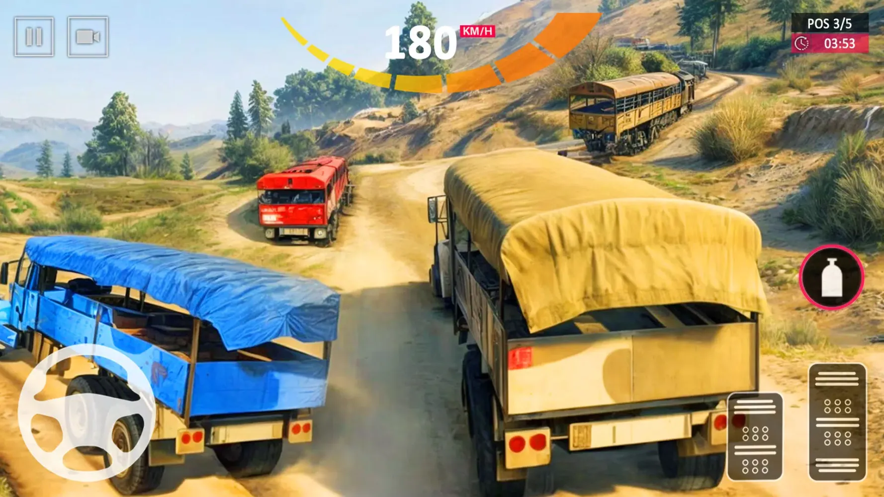 The game features highly realistic physics, ensuring that every bump, jump, and turn feels authentic. Players can choose from five different types of army trucks, including options like the Ukraine Military Simulation Army Truck and the Turkey Army Cargo Transport truck. The high-powered 8-wheeler army trucks provide a unique and challenging driving experience.