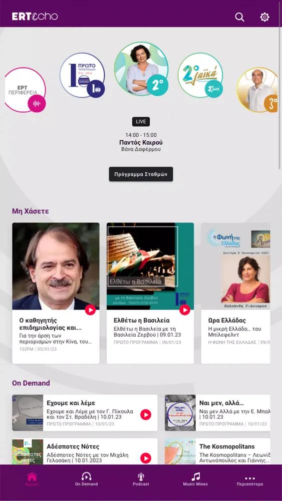 One of the standout features of the ERT εcho app is its commitment to providing uninterrupted access to all ERT radio stations. With 24/7 live broadcasts, listeners can tune in at any time and immerse themselves in the latest tracks and discussions. Beyond live streaming, the app also offers a treasure trove of on-demand content, including beloved radio shows and podcasts. These programs cover a wide array of topics, ranging from music and current affairs to society, sports, culture, and the global Greek diaspora. Each episode is crafted with care, delivering insightful commentary and engaging stories that resonate with audiences worldwide.