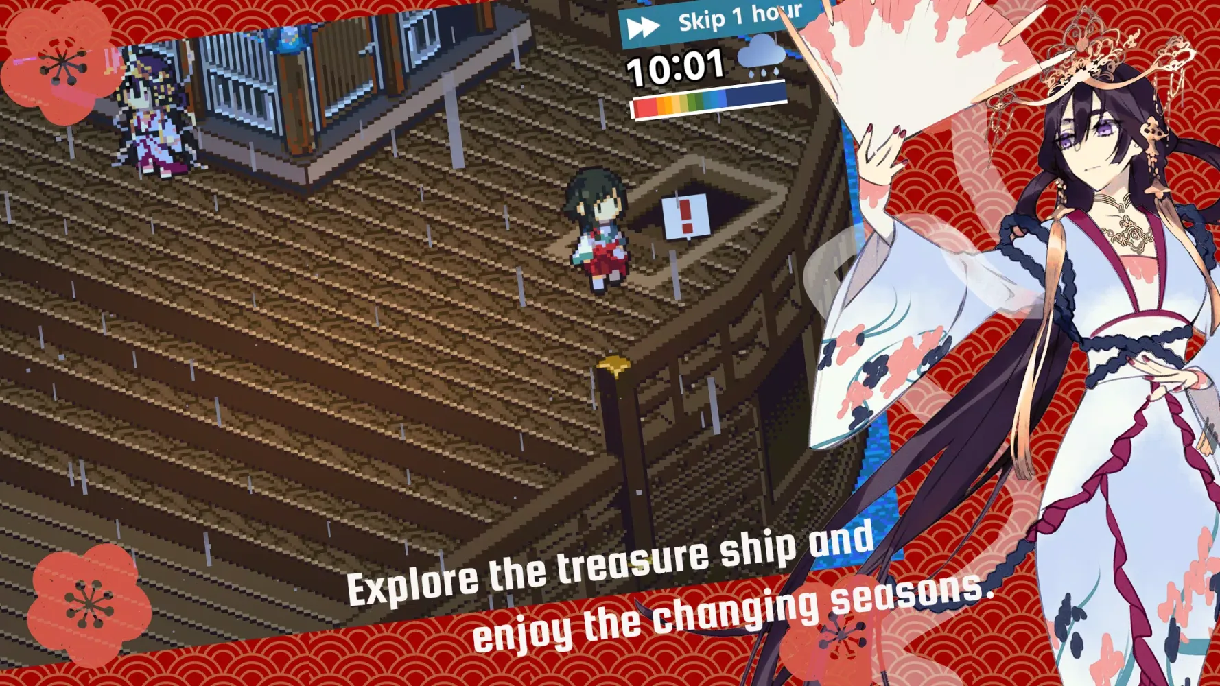 As you navigate the ship by tapping the screen, you'll engage in conversations with the Seven Lucky Gods, earning their affection. Each interaction triggers new events based on various conditions, including your level of affection, the weather, and previous events. With over 100 unique events, the gameplay offers endless possibilities for discovery. You can explore these events by watching advertisements, making it easier to uncover hidden paths within the narrative.