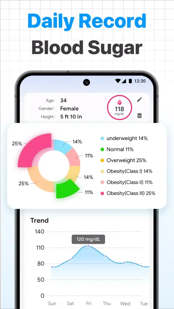 - Blood Pressure & Blood Sugar Management: Effortless recording and visualization of trends.