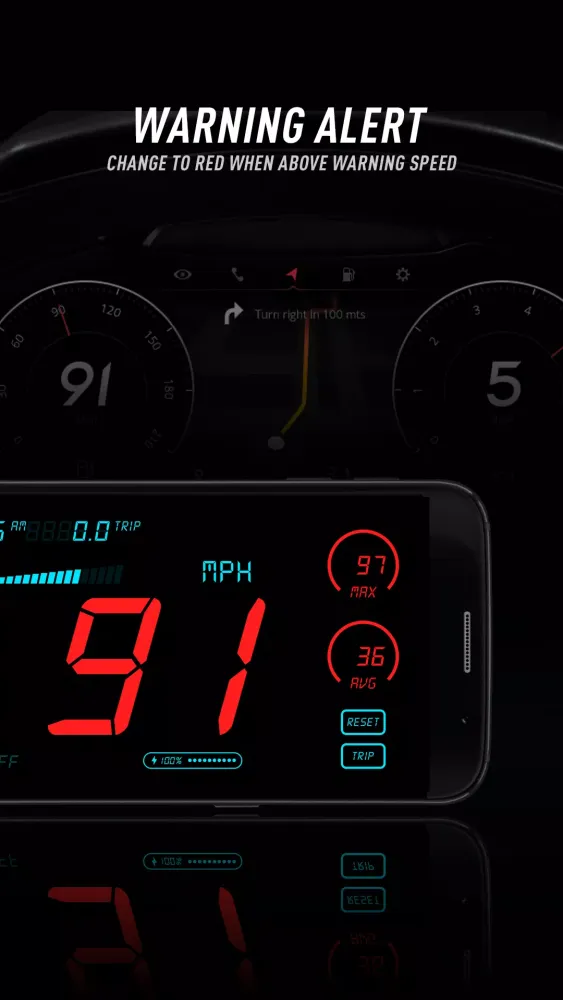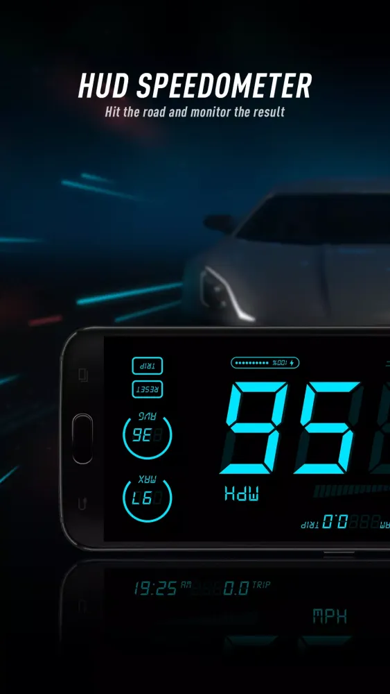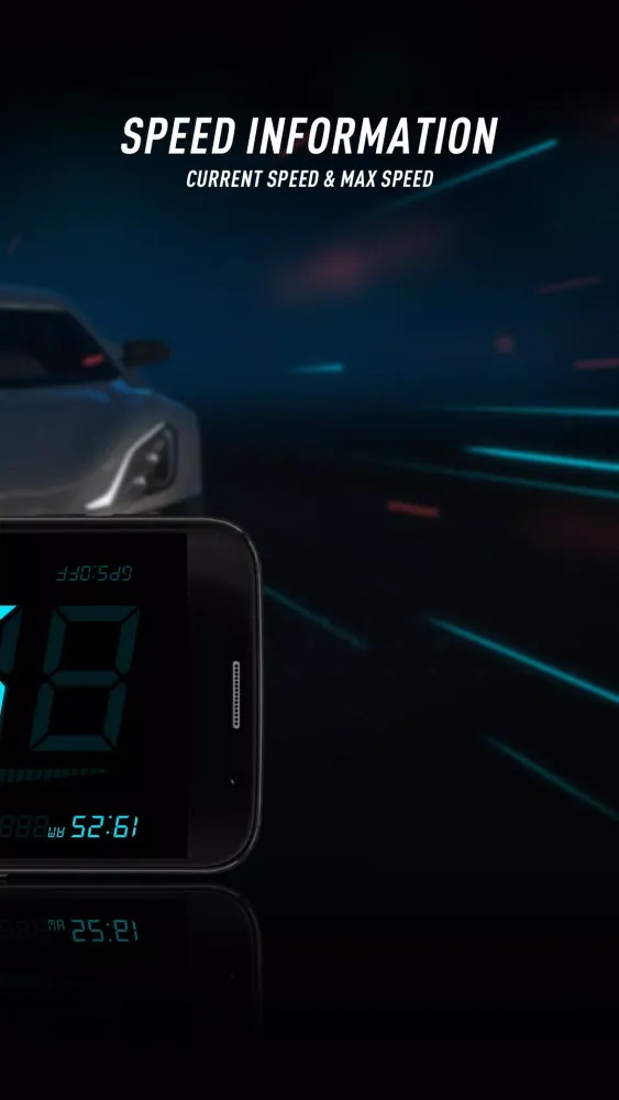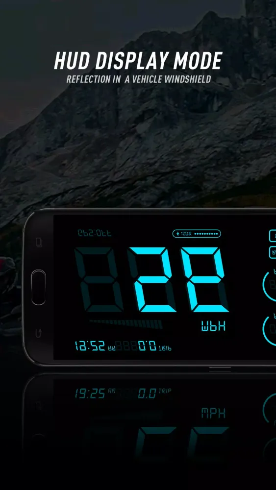 The application supports HUD mode, allowing you to mirror the display in either portrait or landscape orientation. This feature ensures that you can conveniently view the speed information through the front windshield, making it easier to keep an eye on your speed without taking your eyes off the road.