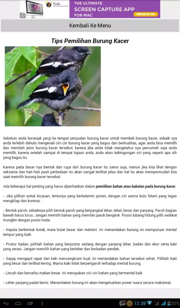 One of the key features of this application is its ability to help users understand more about their kacer. From identifying the bird's distinguishing characteristics to differentiating between male and female specimens, the app offers clear instructions to enhance your knowledge. Additionally, it includes essential tips for selecting high-quality kacer birds, ensuring that you bring home a healthy and vibrant companion.