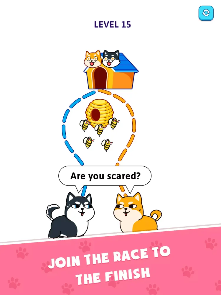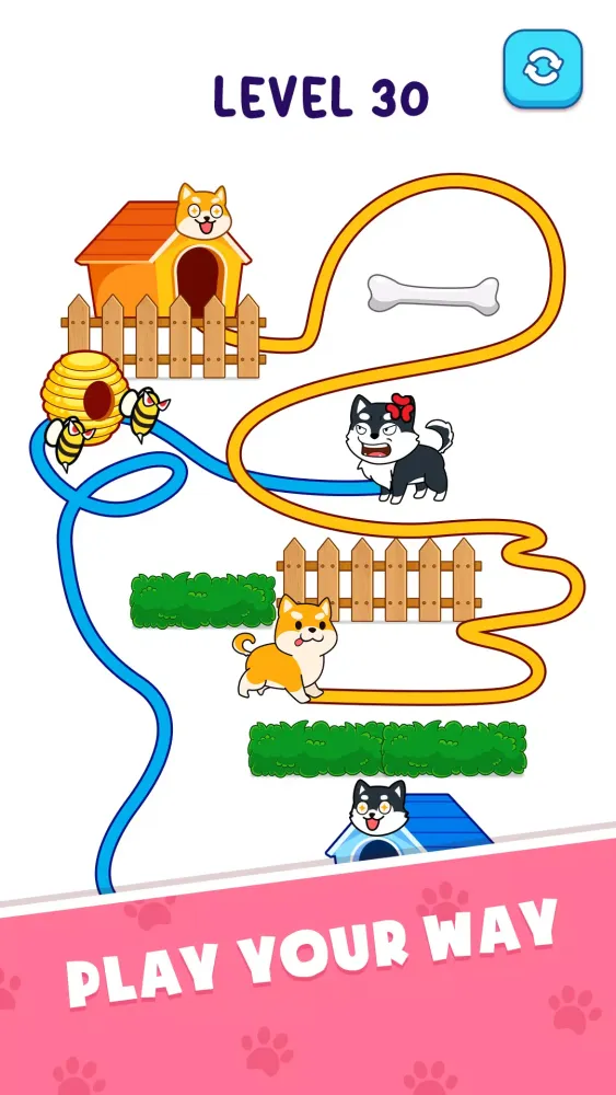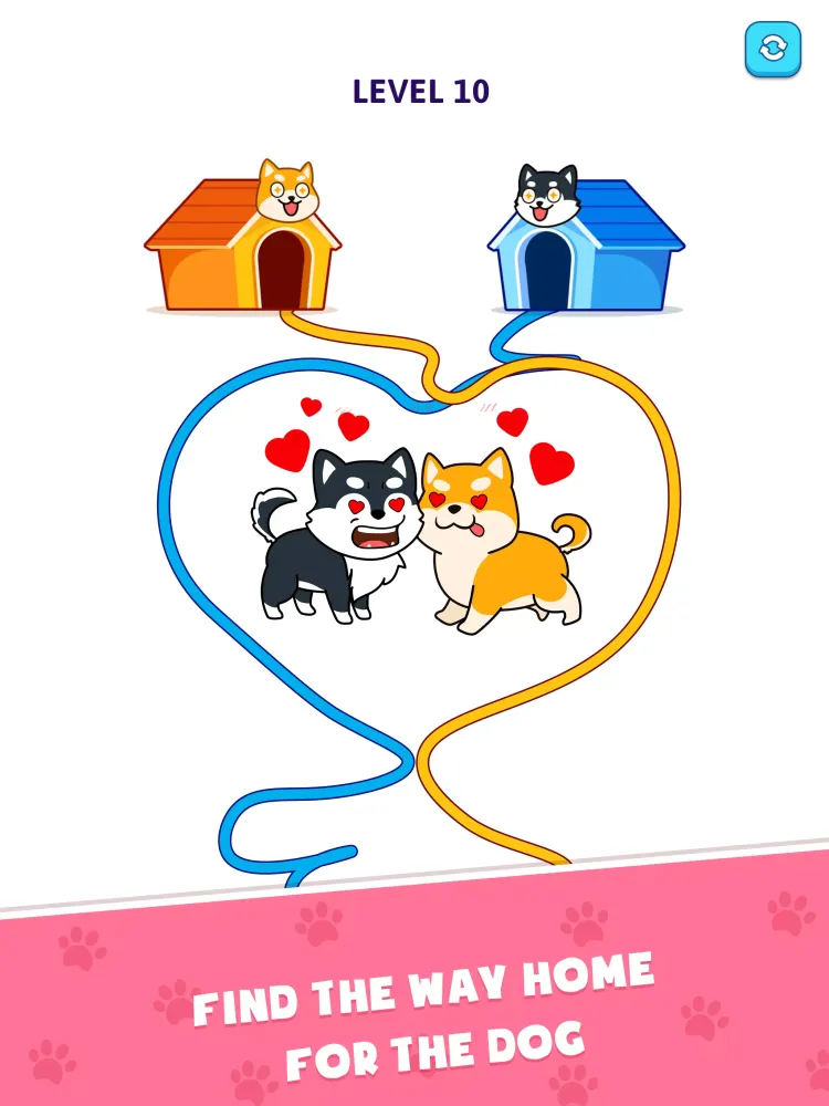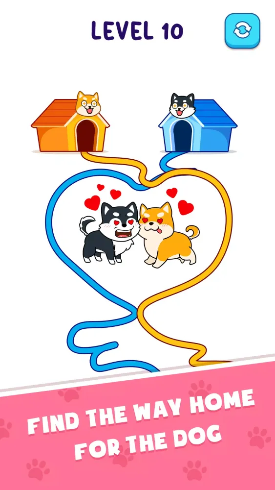 To begin, simply tap on the dogs to initiate the drawing process. Next, carefully draw a line from each dog to its designated house, making sure to avoid all obstacles along the way. As you progress, you’ll need to think strategically and creatively to find the fastest routes. The dogs will follow the lines you draw, leading them safely to their homes and completing the level successfully.