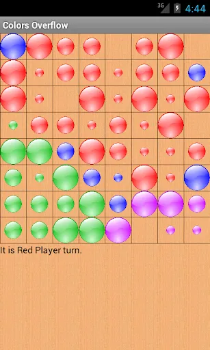 It is a strategic game on a board divided in 8 x 8 cells. Each cell may contain a piece of size one, two or three. Initially each player has three pieces in size two. The players take turns to select one of their own pieces to be increased one in size. If a size three piece is selected, it will "overflow", which means that it will be split into four small pieces, which are then distributed to the neighbor cells (left, right,up, down). If a neighbor is also a size three piece, it will also "overflow". Thus you can get rather long chain reactions.