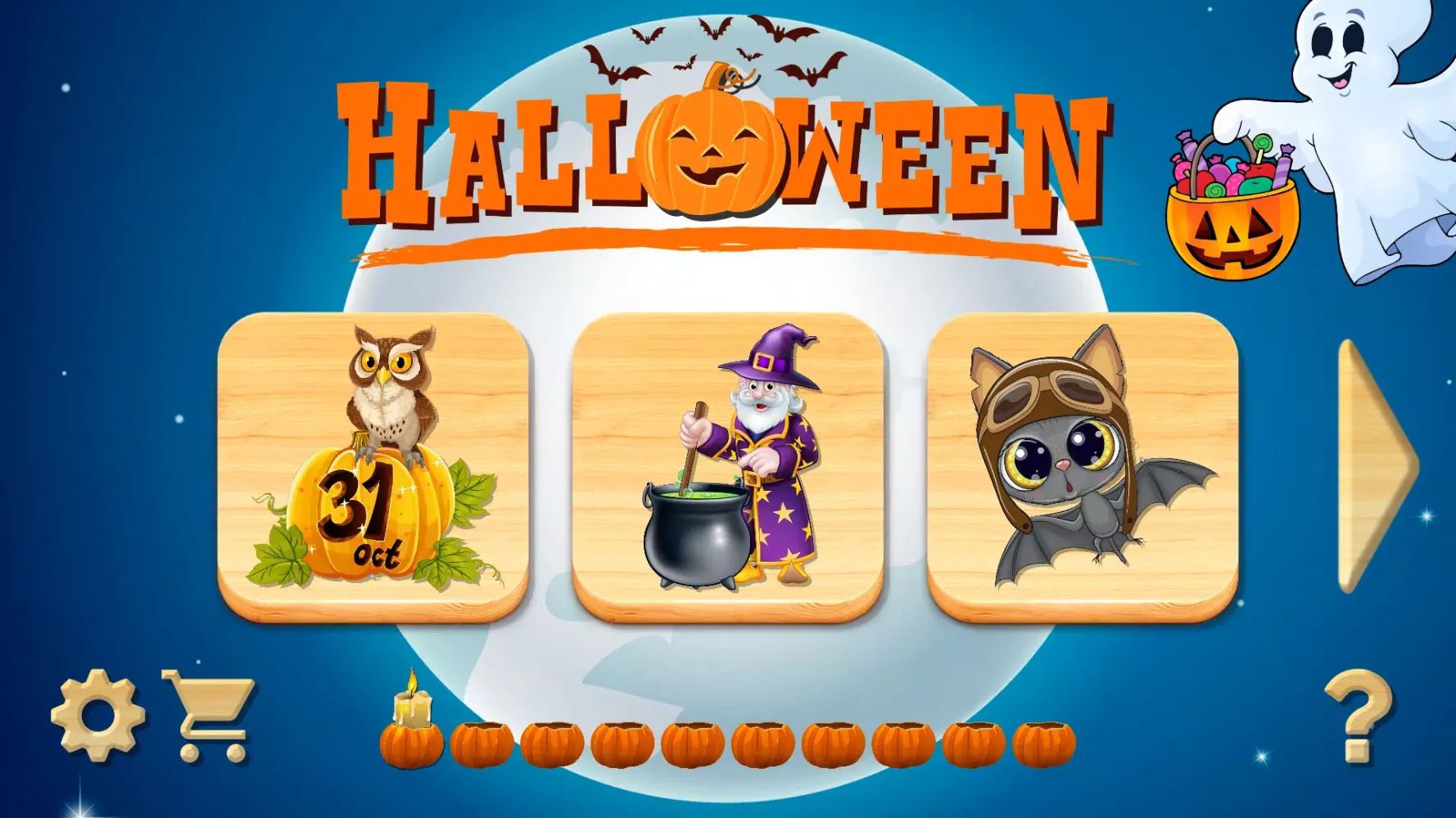 Looking for the best autumn games for your kids? This game offers a variety of Halloween-themed puzzles featuring funny characters like spooky ghosts, pumpkins, bats, and cute witches. It's perfect for both boys and girls who enjoy Halloween cartoons and trick-or-treat games.