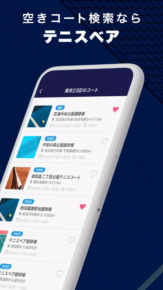 With over 3,000 tennis courts listed, Tennisbear offers real-time availability updates. From public courts in major cities like Tokyo, Yokohama, and Osaka, to private facilities, you can easily find and book a court near you. The app also simplifies the reservation process for public courts by organizing booking methods according to local municipalities. Additionally, many private courts can be booked directly through the app, making it convenient for players of all levels.