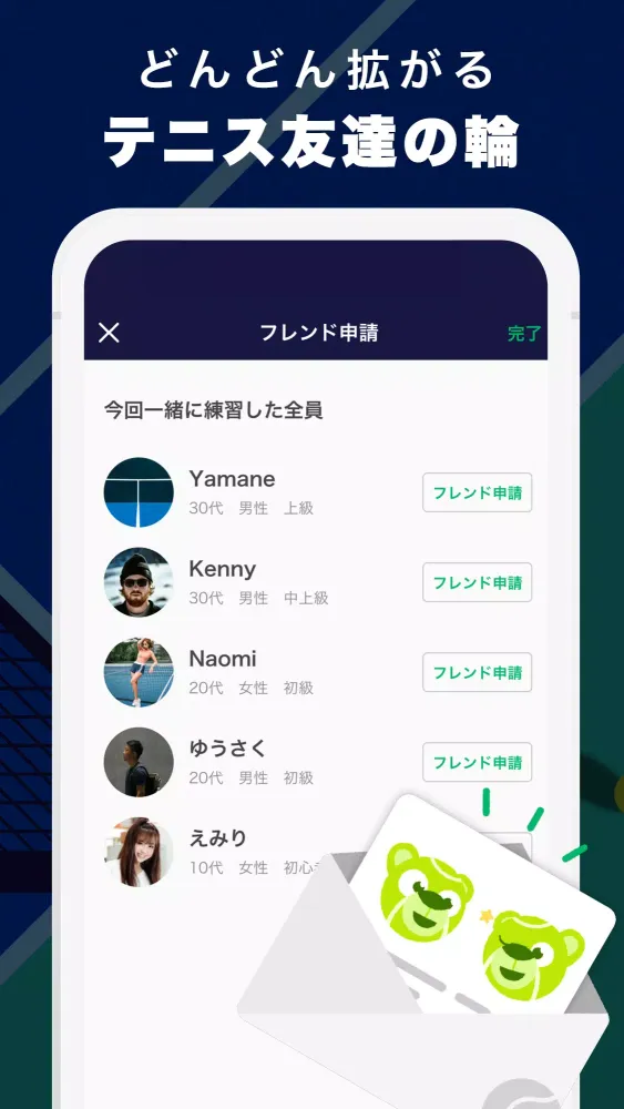 Tennisbear (テニスベア) is a comprehensive application designed to support tennis players by providing all the necessary information from tennis courts to tournaments. Whether you're looking for a casual game or preparing for a competitive match, Tennisbear has got you covered.