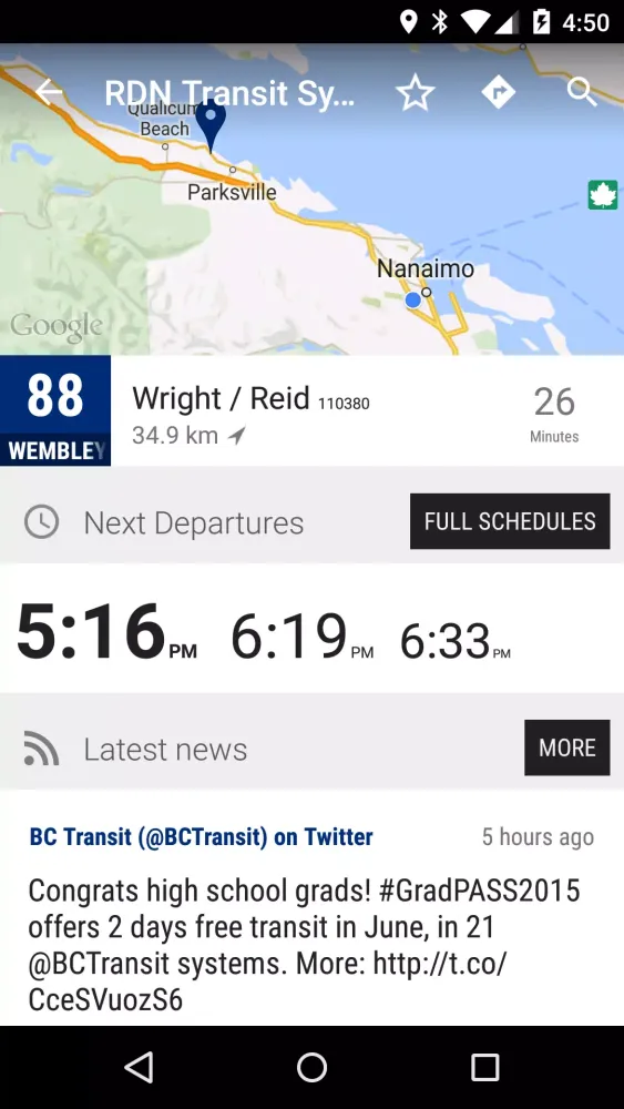 nextride.nanaimo.bctransit.comand to read news from Twitter.