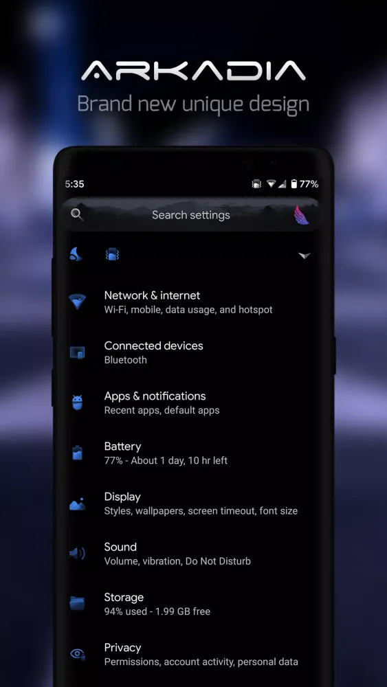 Diferente de alguns temas que podem esgotar a vida da bateria do seu dispositivo, Arkadia está otimizado para eficiência energética, garantindo que seu dispositivo pareça ótimo sem comprometer o desempenho. -