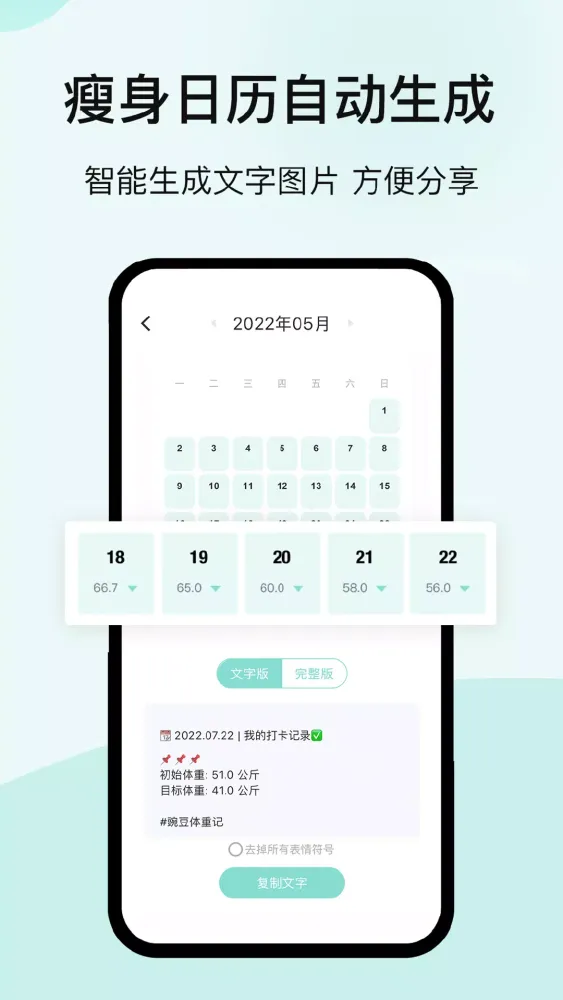 Registre facilmente seu peso diário com apenas alguns toques. A interface elegante permite entradas rápidas, permitindo que você integre o rastreamento de peso ao seu rotina diária.