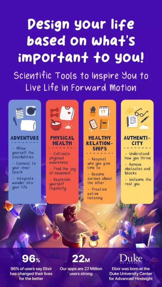 Os criadores do Elixir não são estranhos ao sucesso. Apoiados por psicólogos e especialistas em ciência comportamental, eles lançaram anteriormente o Fabulous, um aplicativo premiado reconhecido por seu impacto transformador em milhões de usuários ao redor do mundo. Com base nessa expertise, o Elixir visa empoderar pessoas a alcançar um maior equilíbrio na vida, cumprir suas metas e maximizar seu crescimento pessoal. Ao abraçar esse processo, você abre portas para uma vida repleta de propósito e autenticidade.