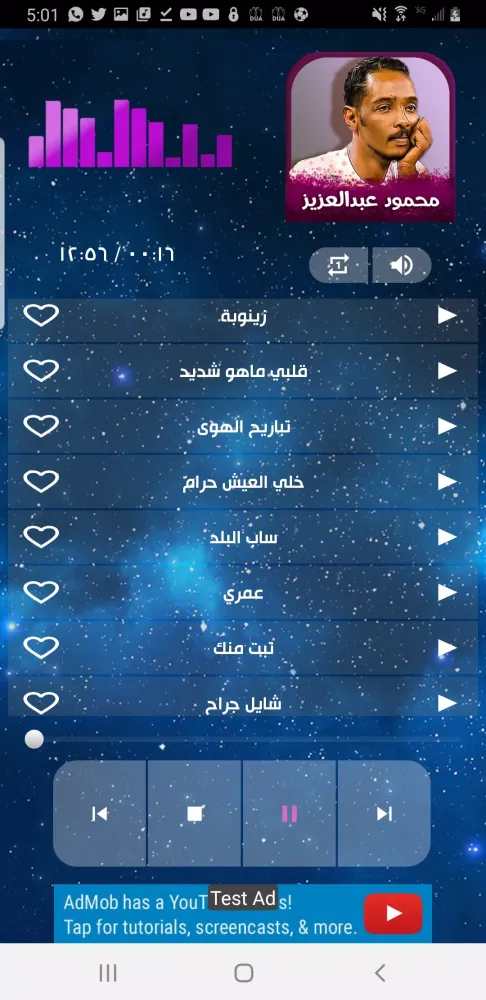 Description of the Application "اغاني محمود عبد العزيز" (Mahmoud Abdelaziz Songs)