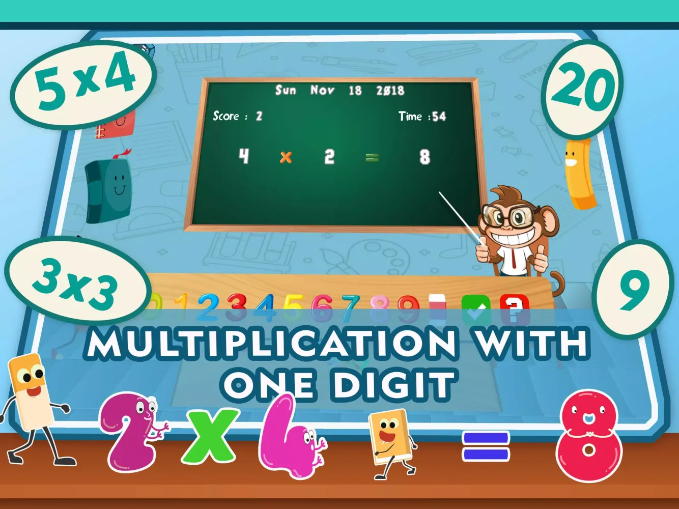 This free learning game is specifically designed to introduce young children to numbers and mathematics through enjoyable activities. Each multiplication activity within the app is structured in a manner that appeals to young students, encouraging repeated engagement. As children progress, their math skills naturally improve. The ultimate objective is to assist preschoolers, kindergarteners, and other young learners in acquiring number multiplication abilities while practicing various problems. Watching children immerse themselves in these math activities is equally rewarding for parents and educators alike.