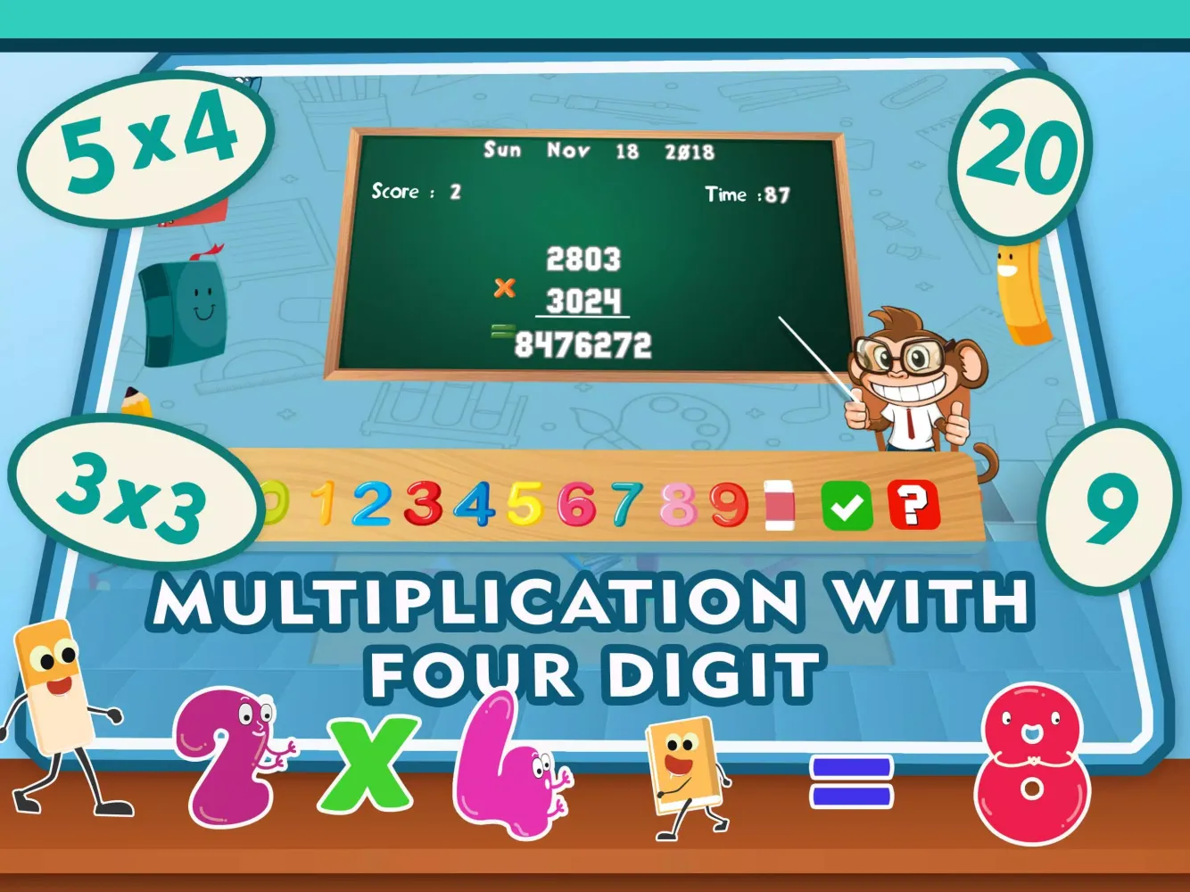 Playing this multiplication game offers numerous benefits to children. Firstly, it provides step-by-step problem-solving experiences where children tackle multiplication challenges systematically. Additionally, each time the app is launched, random multiplication problems appear, ensuring variety and continuous practice. Furthermore, solving these multiplication problems allows children to accumulate points, fostering a sense of achievement and motivation.