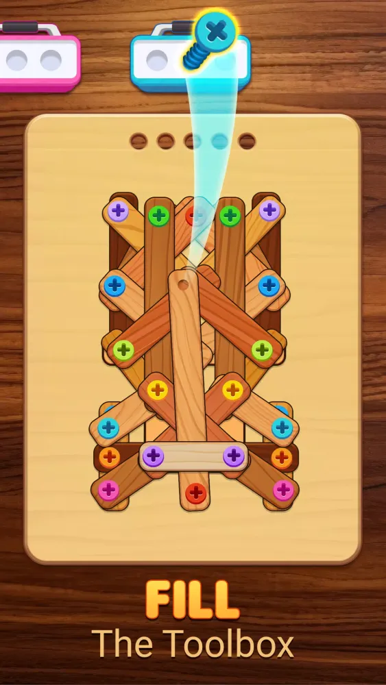 - Tap on the Screw Pin: Fill up the toolboxes with matching colors by tapping on the screw pins.