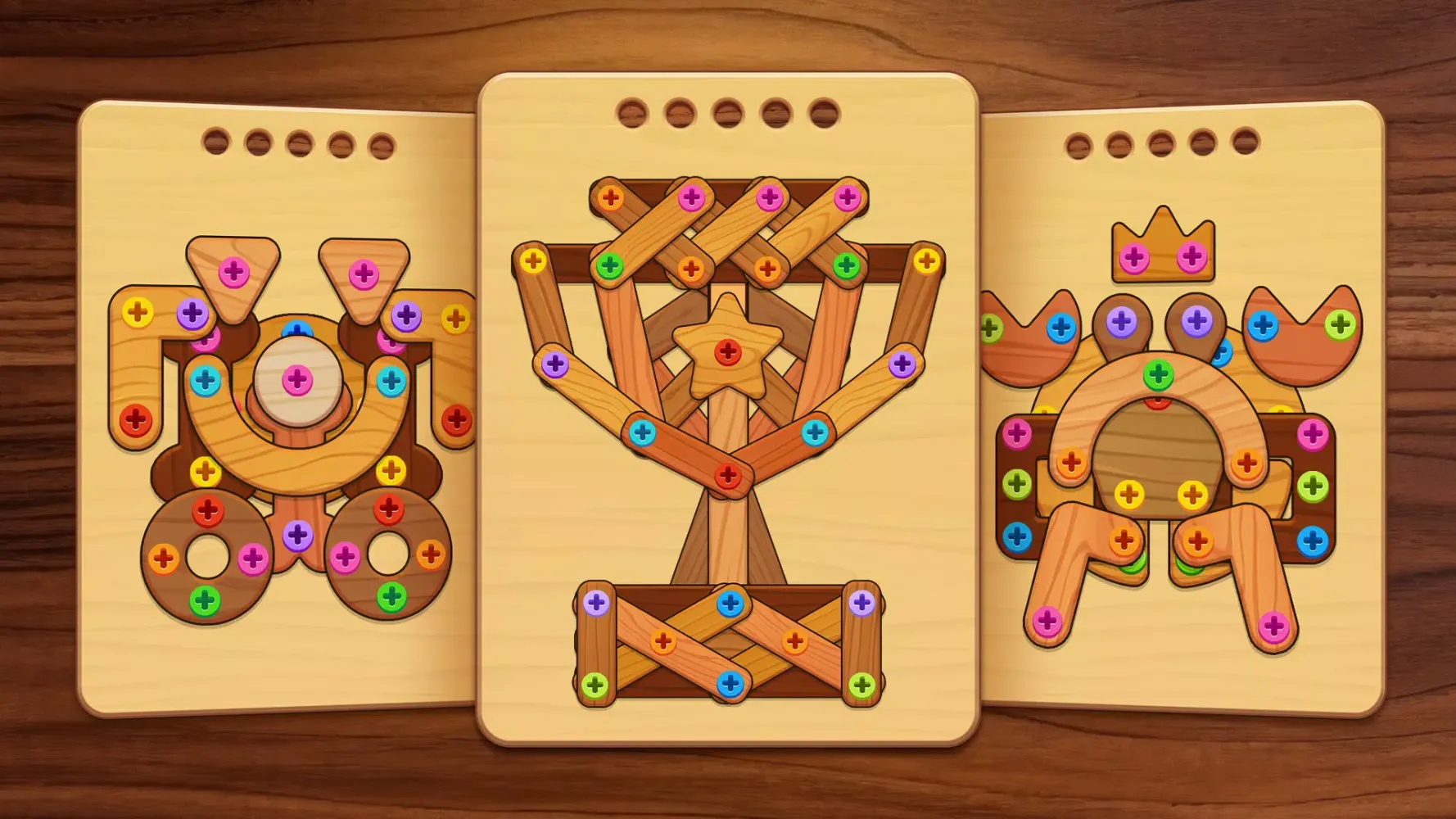 Ready to dive into the world of Woody Screw: Nut and Bolt Jam? Download the app now and start your journey through this colorful and challenging wooden screw adventure. Let the nuts and bolts challenge begin!
