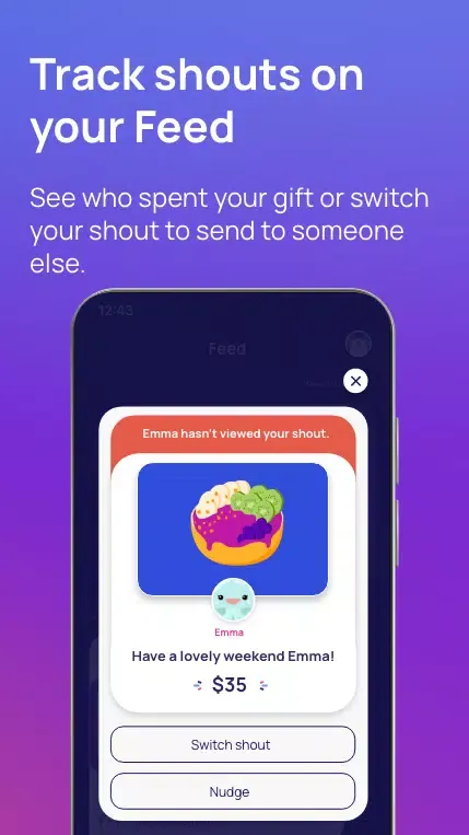 For those who love staying organized, Shouta offers additional tools to enhance the gifting experience. Track the status of your shouts, sync your phone contacts, and even send shouts to multiple recipients simultaneously—all within the app. These practical functionalities ensure that managing your gifting activities remains straightforward and efficient.