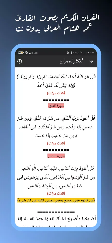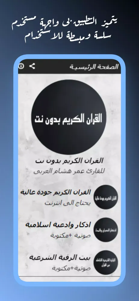In summary, the "Quran by Omar Hisham Al-Arabi Without Internet" application combines devotion, technology, and convenience to create an unparalleled experience for its users. Its rich content, coupled with a thoughtful design and practical features, positions it as an essential tool for anyone wishing to engage more deeply with the teachings of the Quran. We sincerely hope that this application brings you closer to Allah and fulfills your spiritual needs. If you find value in this app, we kindly request you to share your appreciation by rating it with five stars. May Allah bless you abundantly for your support!