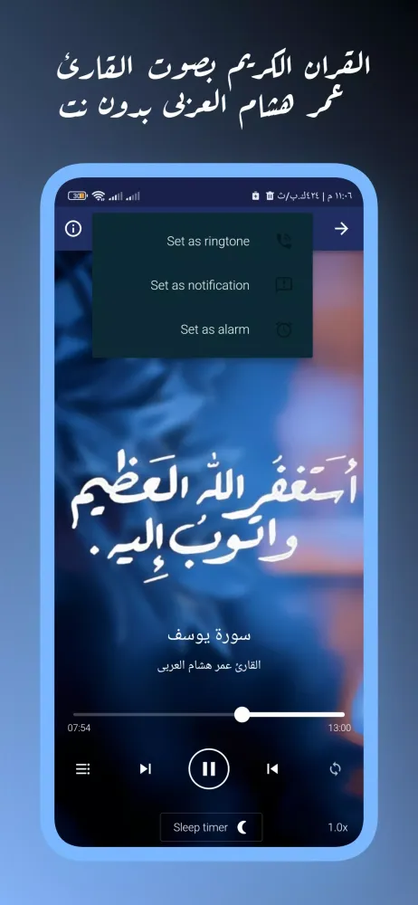 Application Description: Quran Recitation by Omar Hisham Al-Arabi